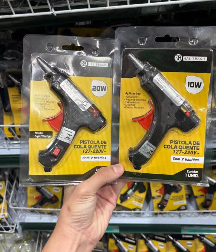 A Pistola Aplicadora Profissional de Cola Quente está disponível nas potências de 10W e 20W, oferecendo praticidade, precisão e eficiência para diversos tipos de trabalhos. Ideal para uso profissional, artesanal, escolar ou doméstico, garante aplicação uniforme e segura. R$19,90